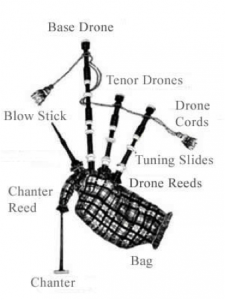 …I discovered that a few minor alterations (easily accomplished by any reasonably handy person using a power drain auger and a ball peen hammer) can quickly render the typical bagpipe mute, while retaining and even enhancing its Aeolian properties, sort of like de-scenting a skunk.